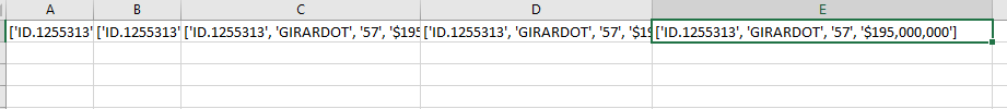 Al hacerle el split y pasarlos al excel quedan todos dentro de la misma celda.