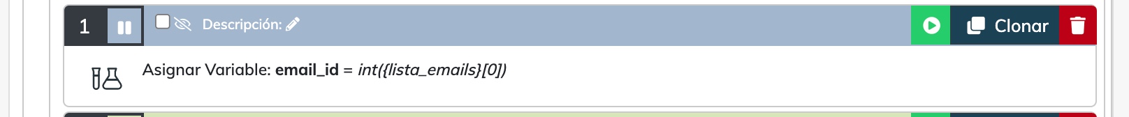 Por otra parte, ¿has validado que el ID existe previamente? y ¿tú proporcionas el ID numéricamente o es por variable? En caso de que sea por variable sería bueno asegurarse que es un valor entero, por ejemplo ver la imagen adjunta donde lo convertimos a entero pero previamente leemos los IDs en la variable lista_emails y se extrae el ID del primer elemento de correo.