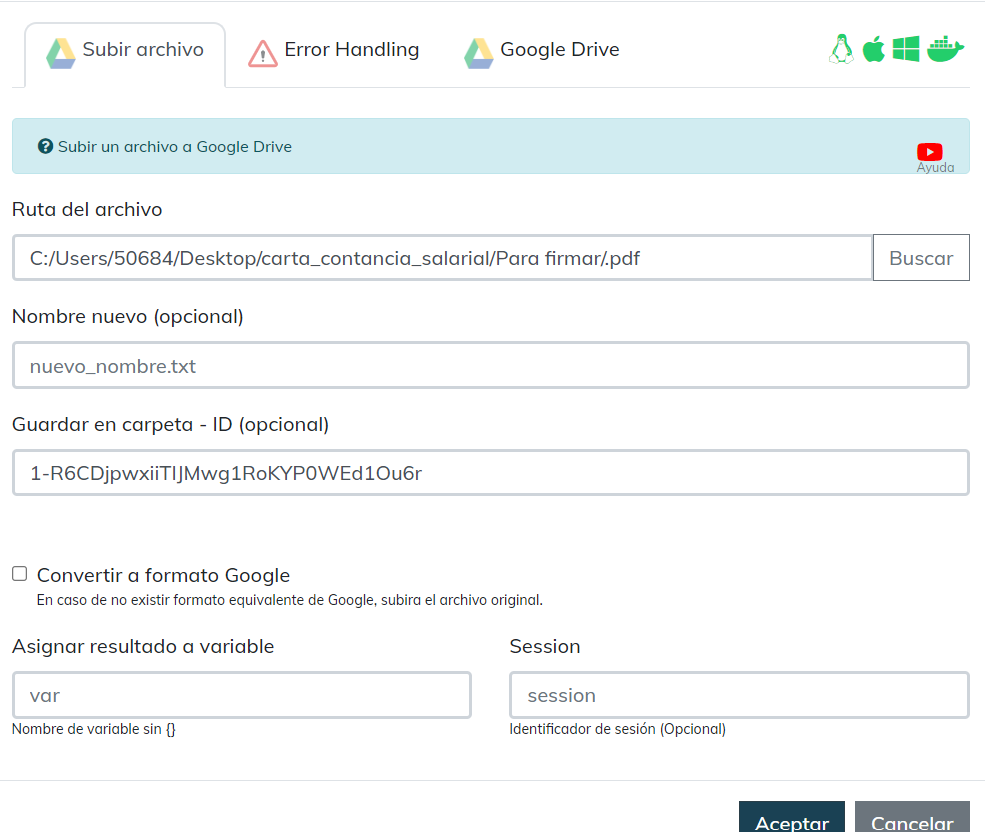 Hola alguien sabe como puedo enviar un pdf que esta en google drive a otros cntactos no a mi mismo. En el modulo google drive el comando compartir file solo puedo compartir un pdf conmigo mismo pero no me permite ...