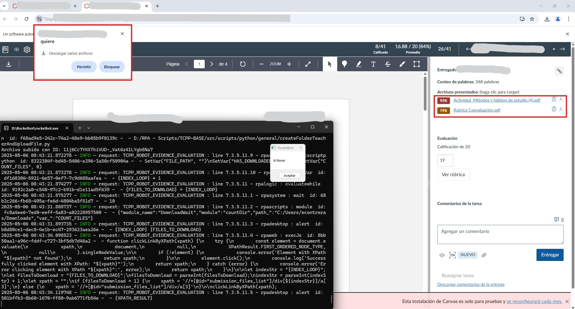 Hola, Me está pasando que han detectado que Chrome está en modo automático (controlado por Rocketbot, cuando sale el mensaje en el navegador: “Chrome está siendo controlado por un software de pruebas automatizado”), o algo así, porque si ejecuto cuando estoy ...