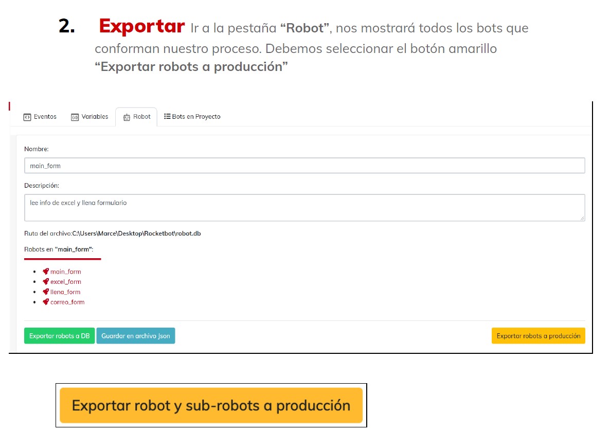 Hola a todos. Por fin pude terminar el bot que estaba construyendo, sin embargo ahora me encuentro con una nueva duda. Ya cuento con la licencia de rocketbot on premise S instalada en mi servidor y he hecho pruebas del bot ...