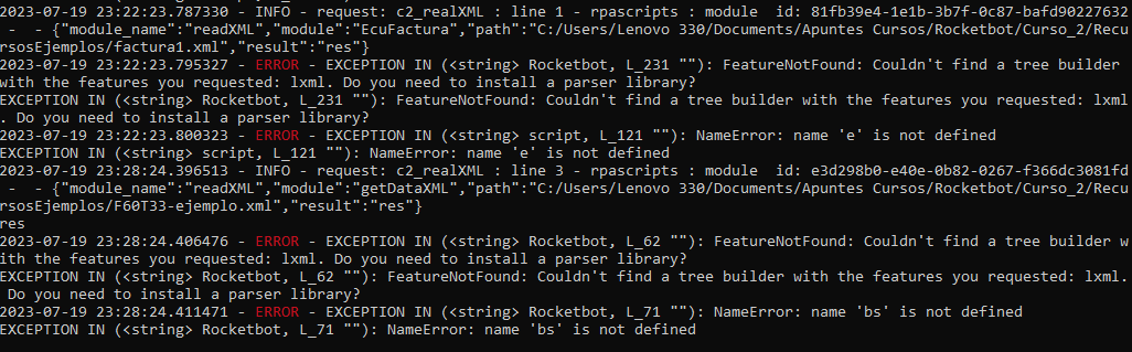 Hola, buenas tardes. ¿Me podrían decir que sucede con este problema? Al intentar convertir un XML a diccionario con los comandos de Rocketbot me muestra el siguiente error: