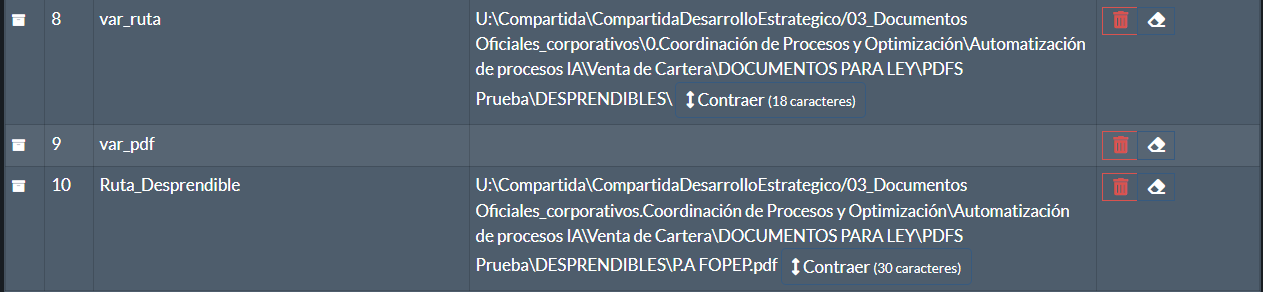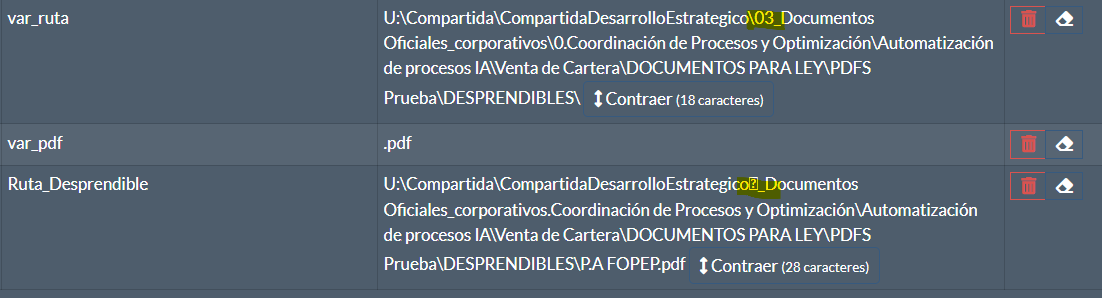 Ahhhh clarooo, listo, si me sirvió esa concatenación y si me resulta la ruta de cada documento, pero en la acción de Leer PDF, me aparece este error: “Invalid \escape: line 1 column 52 (char 51)”, pero creo que sera algo de la carpeta.