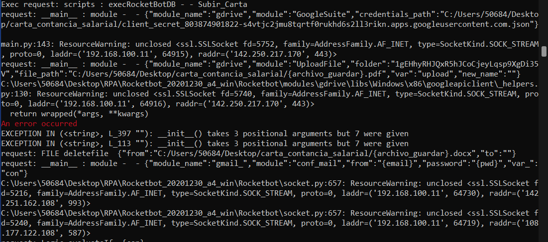 Por favor envia print completo de la terminal de Rocketbot con el error para revisar.